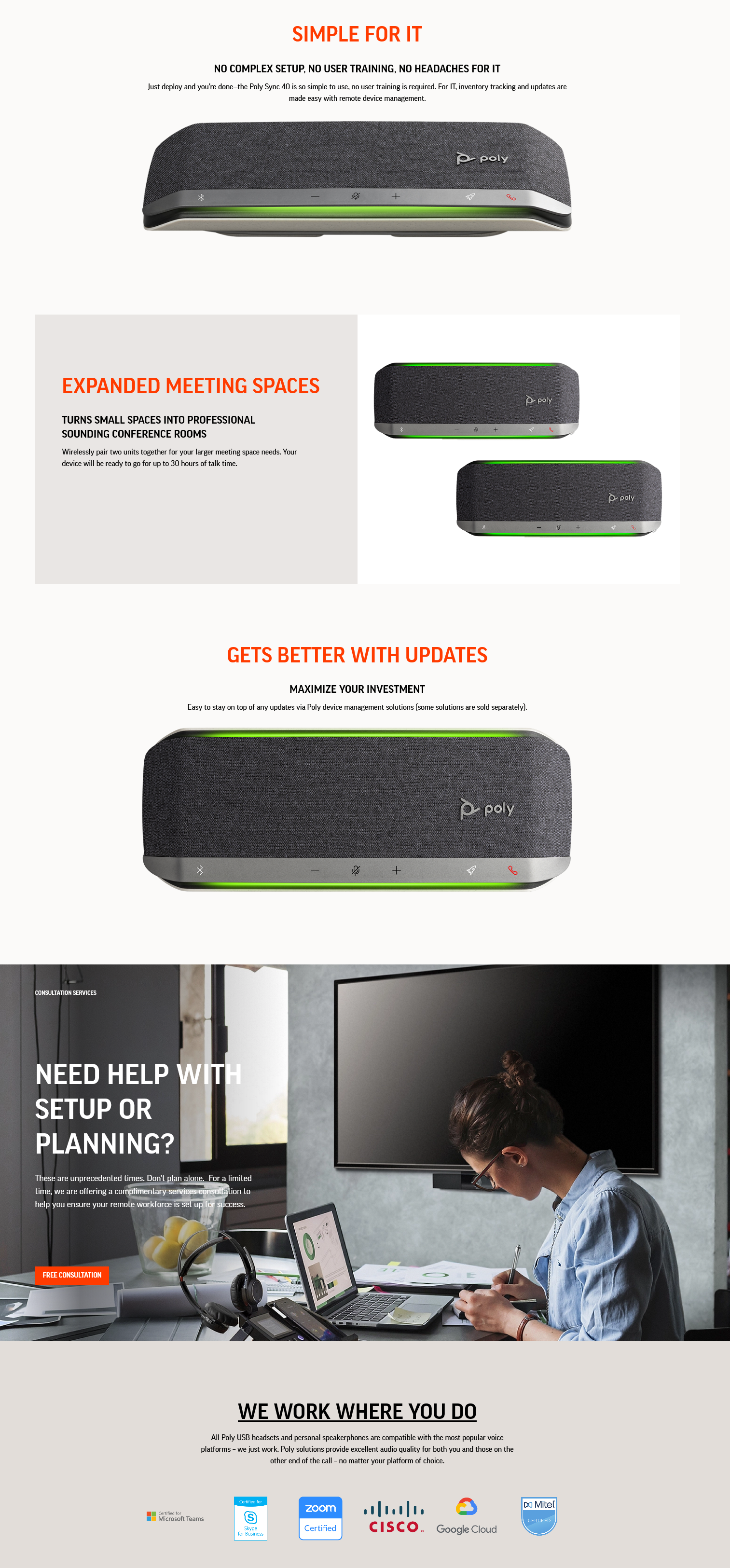 Smart Speakerphone Poly Sync 40+ For Flexible/Huddle Rooms